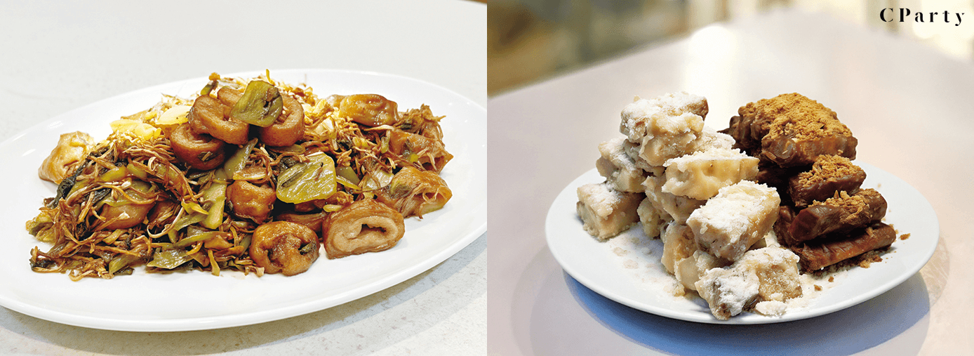 「我的菜,就是想到什麼做什麼,屬於我的菜。」貓人說道。在他手裡,餐廳裡常見的客家小炒,升級為帶有個人標誌的「客家大炒」──豆干、瓜蒲、松阪肉切成極薄片,過油後脆口,端上桌鑊氣四溢。看似最尋常的番茄炒蛋,貓人以雞湯為底,讓熟悉的蛋汁味道提升層次,特別挑選番茄品種,酸味先行、隨即回甘,平衡得恰到好處。這份細膩,讓番茄炒蛋不再只是日常,而是驚喜。另一道難以忘懷的,則是老菜脯雞湯。以家傳二十年陳年的客家老菜脯,搭配濃郁膠質滿滿的老母雞湯,複雜深沉的香醇在舌尖交融,這已不只是湯,更像是一件層次豐富的藝術品。而其他像是薑爆肥腸、蔥爆牛肉這些熟悉菜色,他也都能在斷點與留白間拆解重構。
