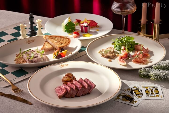 台北喜來登大飯店2樓安東廳牛排館於12月24日及12月25日晚間推出「放玩聖誕」牛排饗宴——前菜以「炙燒海鱺魚」、「香煎日本北海道干貝」、「至尊奧實嘉魚子醬」等創意佳餚揭開序幕,湯品有「和牛蔬菜湯」、招牌「經典干邑風味龍蝦濃湯」、「蘑菇卡布奇諾湯」可選,主菜則可挑油淋「Flannery乾式熟成28天丁骨牛排」、鹽燒「美國Prime菲力牛排」、「美國蛇河農場極黑金牌和牛肋眼牛排」、「紐西蘭Lumina高地和羊」等精選料理,最後以聖誕限定「開心果蛋糕」、「法國白桃香草冰淇淋」、「火焰焦糖薄餅」作為甜蜜收尾。