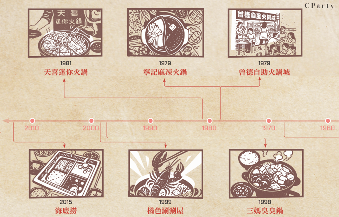 90年代的「三媽臭臭鍋」開啟平價個人小火鍋時代。以一人一鍋、固定套餐形式主打快速、方便,並將臭豆腐、泡菜等特殊風味小吃融入火鍋架構。這不僅改變了火鍋的社交屬性,也讓「自己吃一鍋」成為台灣外食文化的重要象徵。