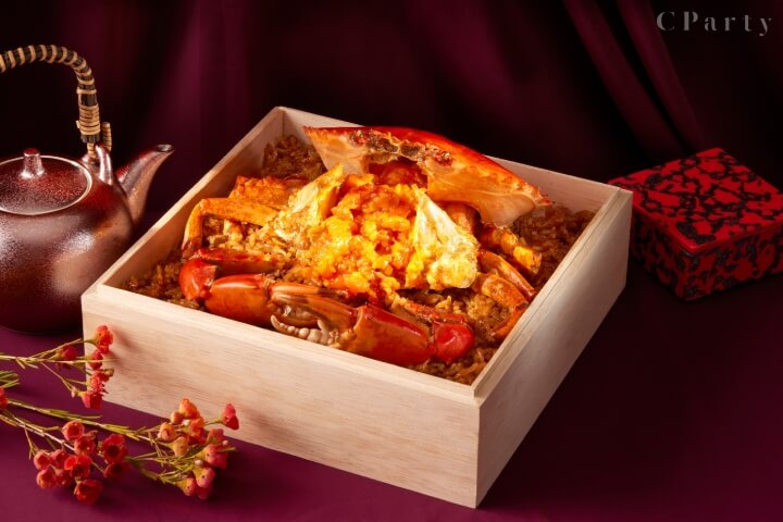 台北寒舍艾美酒店寒舍食譜「五福臨門闔家歡」每組13,888元,圖為「蠔汁糯米炒膏蟹」,適合四人享用,即日起至2026年1月31日開放預購,詳情及預訂請洽台北寒舍艾美酒店訂席中心或官網查詢。