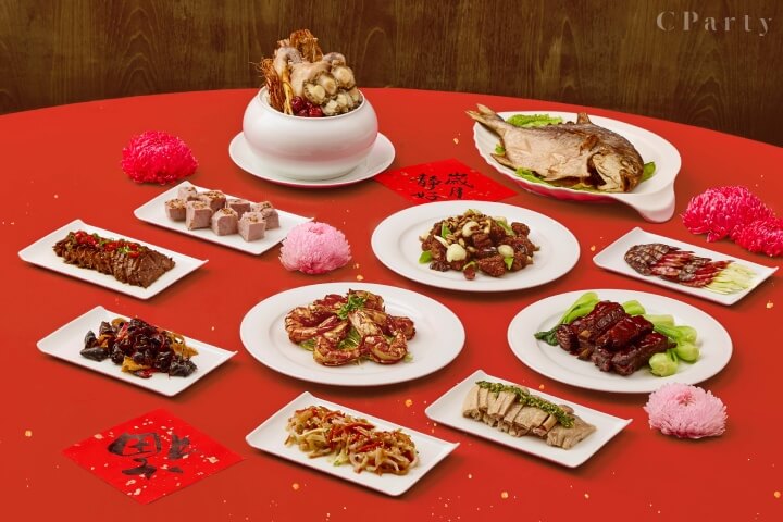 米其林一星餐廳「請客樓」推出「極品御璽 六人海陸盛宴」——以匯集香烘烏魚子、椒麻放山雞、川味蒜泥鮮蝦等經典滋味的的「請客五福集」開場,「御品佛跳牆」則以南非鮑魚、頂級干貝等豐厚食材展現豪華氣勢,搭配肉質厚彈的「青椒汁時鮮魚」、細膩作工的「黑蒜無骨牛」、香氣飽滿的「干貝麻油雞煨飯」鋪陳年味層次,最後以清甜細緻的「紅豆藜麥鬆糕」作結,凝聚星級餐廳的年節儀式感。