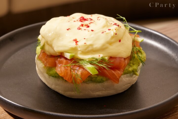 主食類則主打更具飽足感的選擇——「KFC 炸雞鬆餅」呼應加州街頭文化的自由混搭,韓式香料炸雞翅裹水牛城辣醬,搭現烤鬆餅與楓糖,揉合美式奔放與韓式辛香,外酥內嫩、鹹甜交織;馬芬堡「煙燻鮭魚・炸蝦滿福堡」以酪梨醬為底,搭配煙燻鮭魚與酥炸鮮蝦排,清爽飽足,如海風拂面開啟美好早晨。