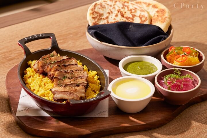 「牛排、薯仔蛋」經典美式的牛排搭配半流心太陽蛋,亦可加價600元升級為香嫩菲力,滿足各種肉食慾望。「印度坦都里烤羊、薑黃飯」融合美國西岸多元移民文化的世界風味,印度香料烤羊排外香內嫩,搭配金黃薑黃飯,濃郁迷人。