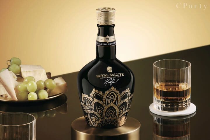 皇家禮炮21年王者之冠限定版,將百年皇室傳統融入前瞻性的現代設計語彙,巧妙將英國皇室標誌性的拉夫領(Ruff Collar)元素,轉化為優雅細緻的金色訂製蕾絲袖口圖紋,並結合俐落的現代幾何線條,重新詮釋皇室風格的華麗繁複美學。