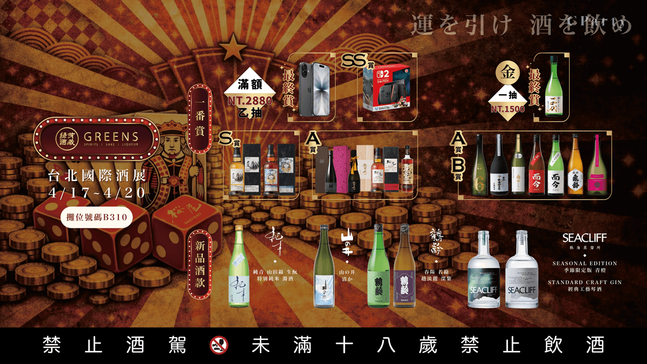 「2026台北國際酒展・純酒展」將於四月中旬登場,是北部地區最大型的酒類展覽盛會,每年吸引上萬人響應造訪。往年日本酒展區堪稱全場最熱鬧,各大日本酒代理商精銳盡出,展出清酒、水果酒、燒酎,還有成長快速的琴酒,搭配各式互動小遊戲,再享優惠折扣、滿額贈品。